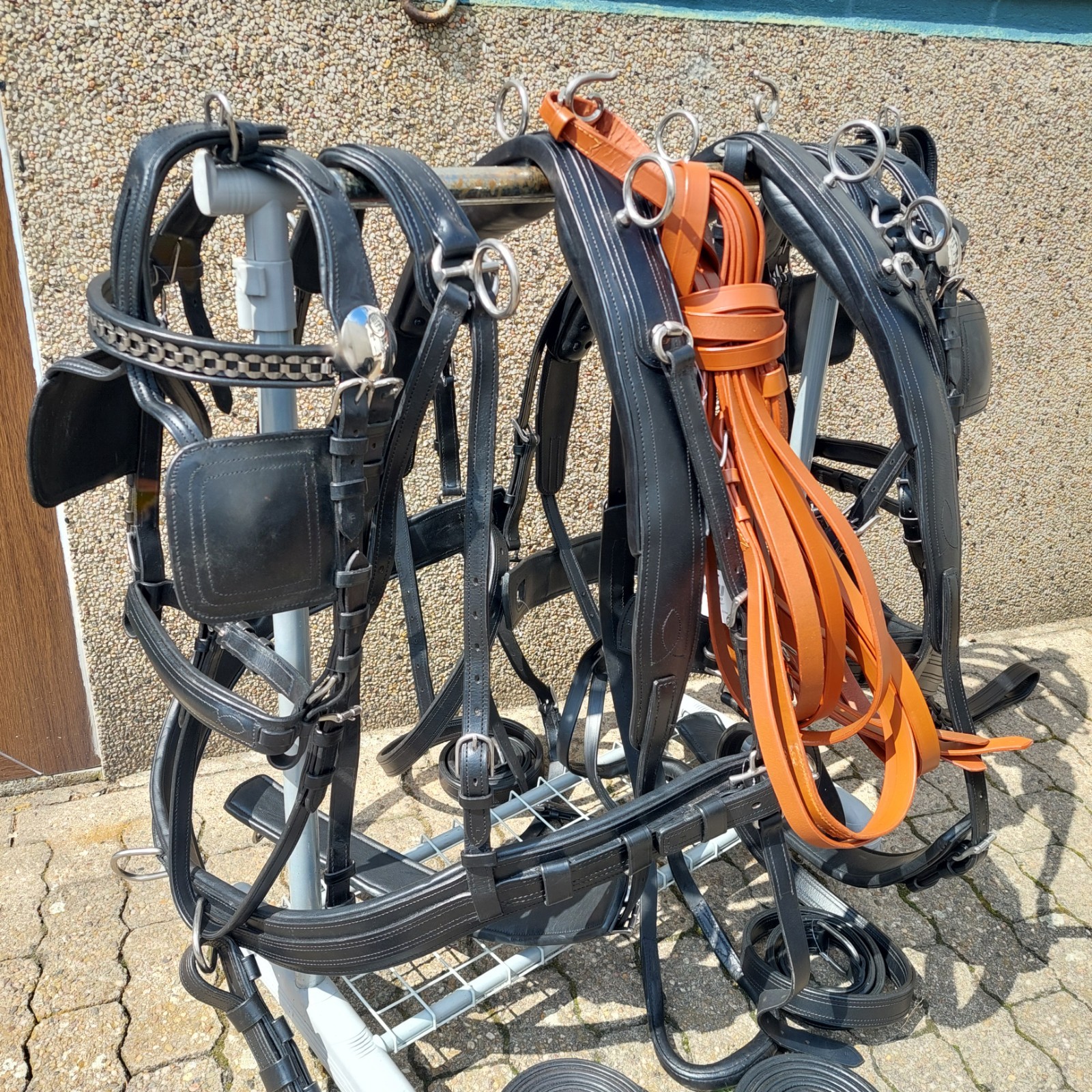 Komplett mit Kopfstücken,Kammdeckel Brustblätter , Schweifriemen, Bauchgurte, Zugstränge , Fahrleine